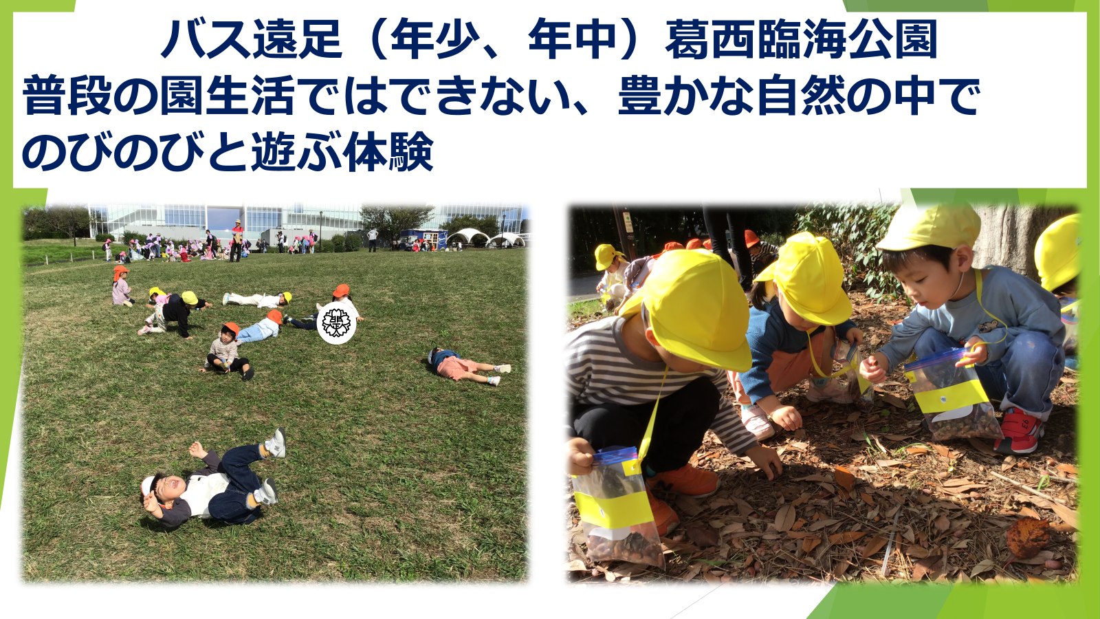 大型バスに乗って、年少組と年中組は葛西臨海公園に、年長組は中央区立柏学園に芋ほりに行ってきました🚌✨